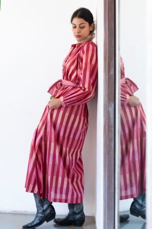 Sash Dress in Berry Broken Stripe